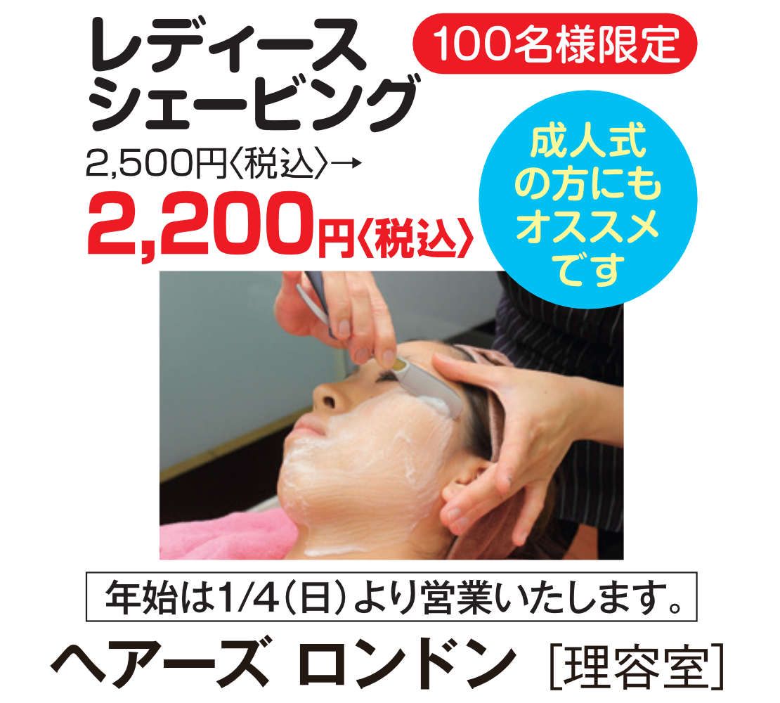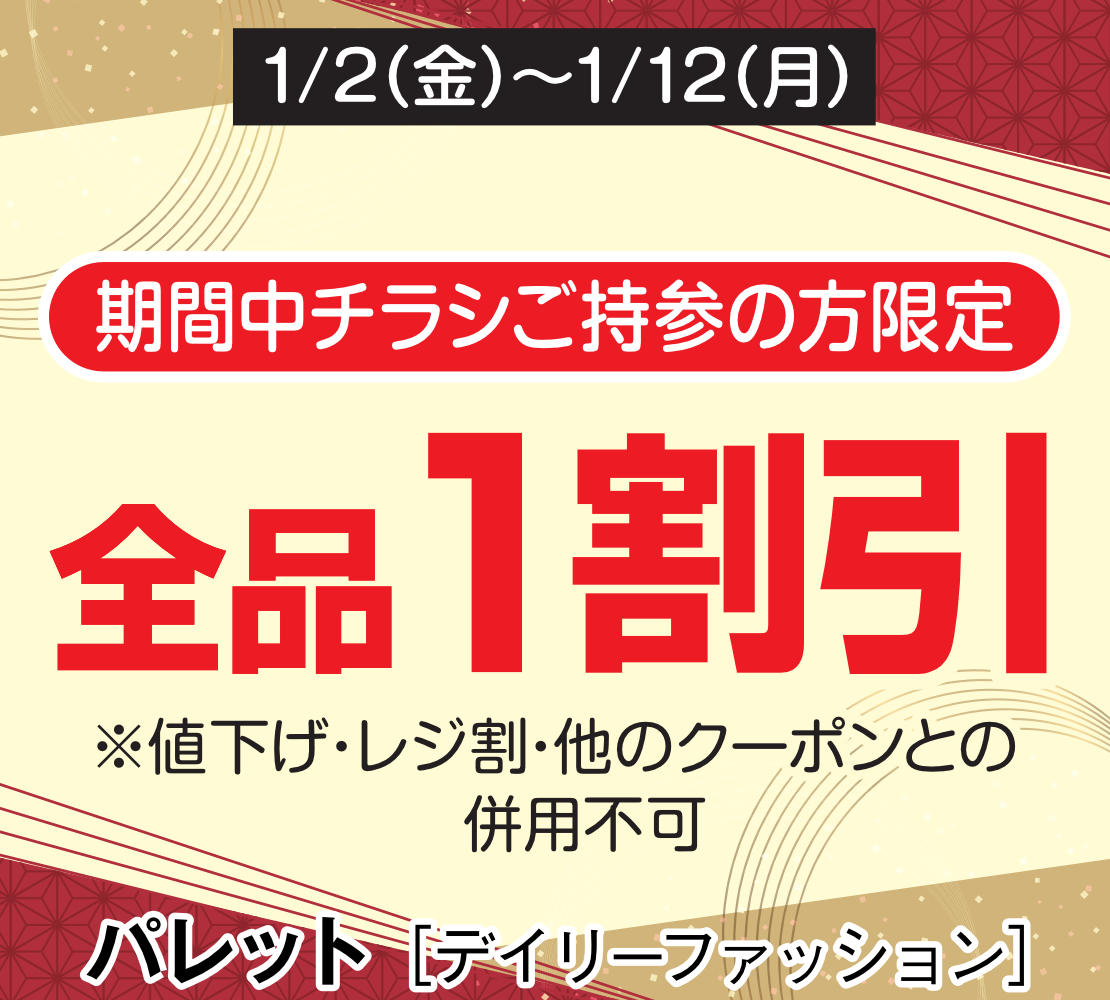 | 令和8年1月2日㈮~1月31日㈯ | 古着セール | #eN | 2階ハニーズ横にて。1/2は15:00、1/3は17:00までの営業。 |