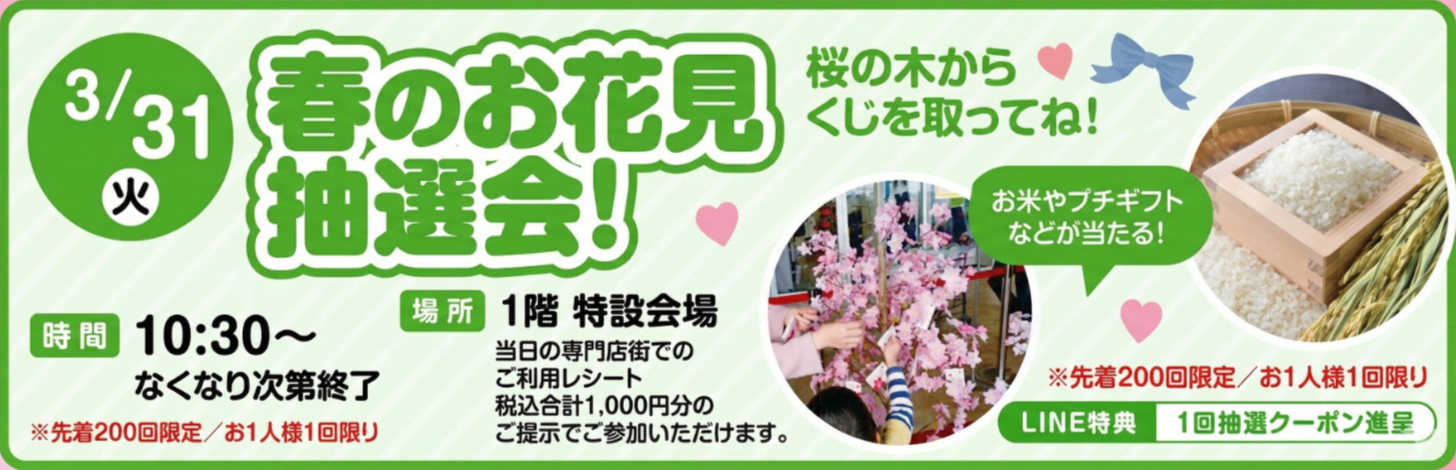 | 3月26日㈭~30日㈪ | 和菓子フェア | 和菓子処 夢幻 | 1催事場薬局側にて |