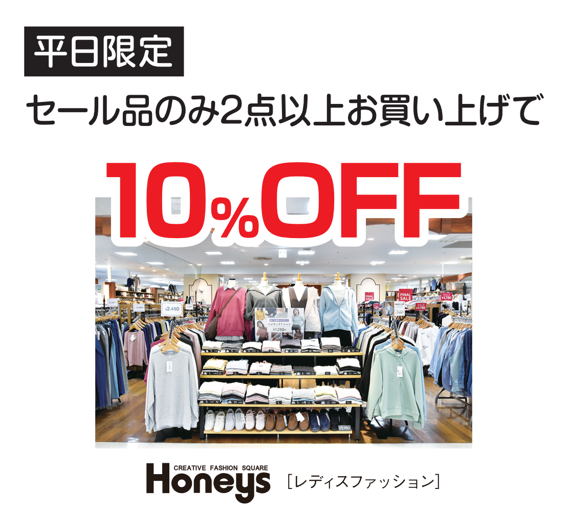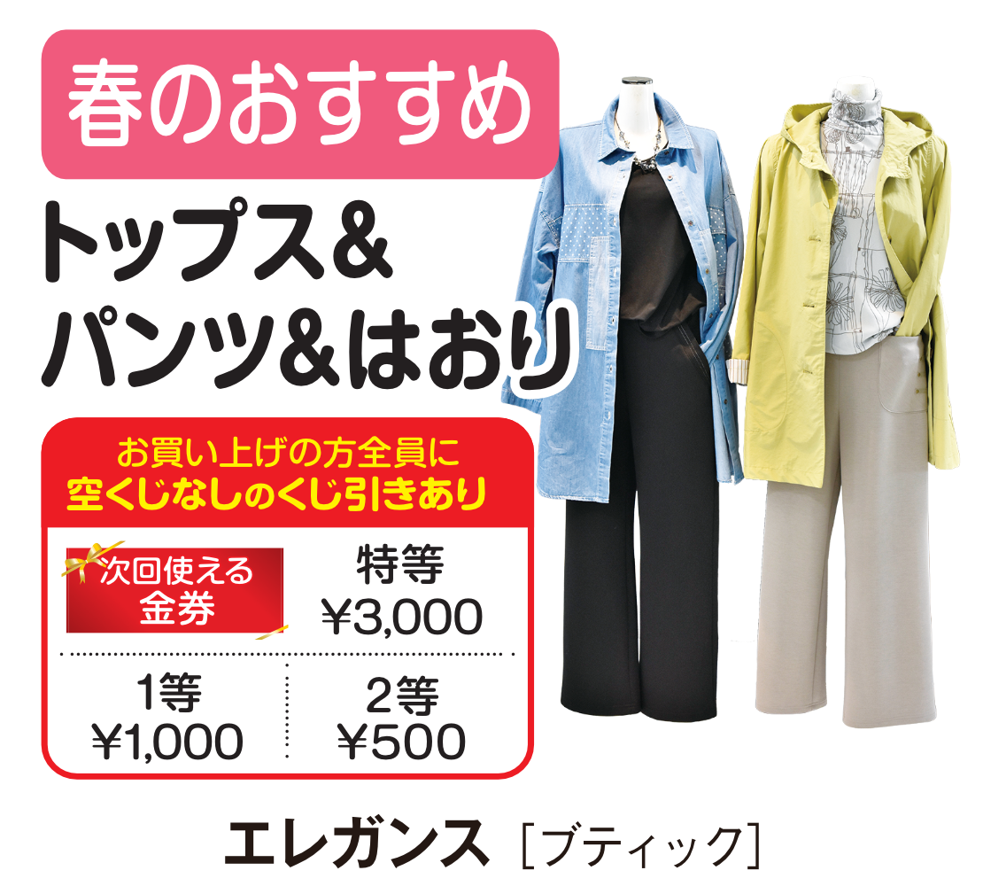 - 2階ブティック「ソルクオーレ」は令和8年2月16日㈪をもって閉店いたしました。長きにわたるご愛顧、誠にありがとうございました。