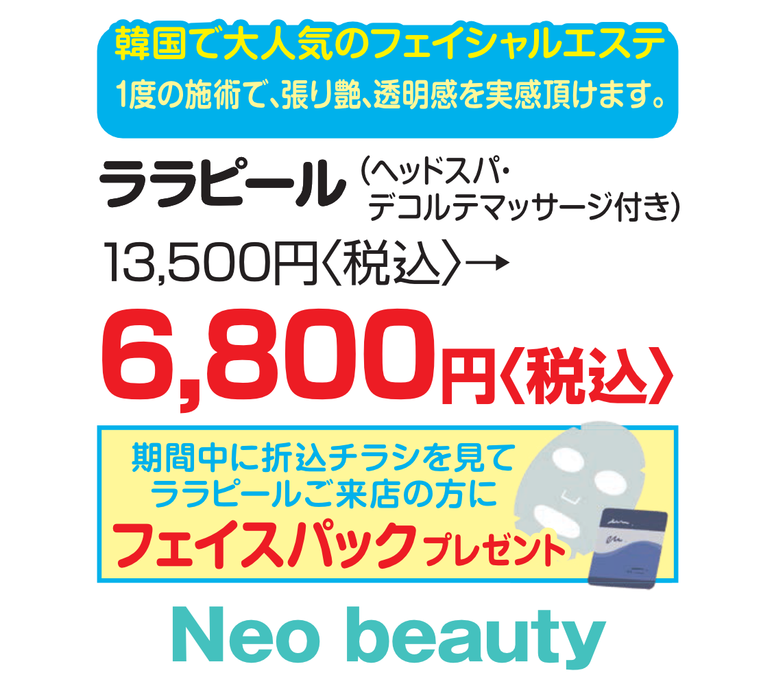 - 9月3日より、まつげエクステサロン「Neo beauty」が3階セリア横にてオープンいたしました。